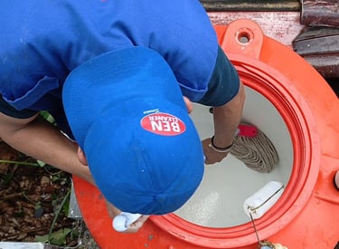 8en Cleaner Service menyediakan menyediakan jasa membersihkan penampungan air, seperti toren, gelonteng dan kolam penampungan air