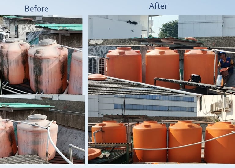 8en Cleaner Service menyediakan jasa pengecatan penampungan air / toren yang sudah kusam dan pudar.